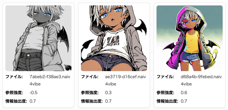 NovelAIのポーション機能で保存・出力されたファイル(.naiv4vibe / .naiv4vibebundle)の中身を、ブラウザ上で手軽に確認できるツールです。